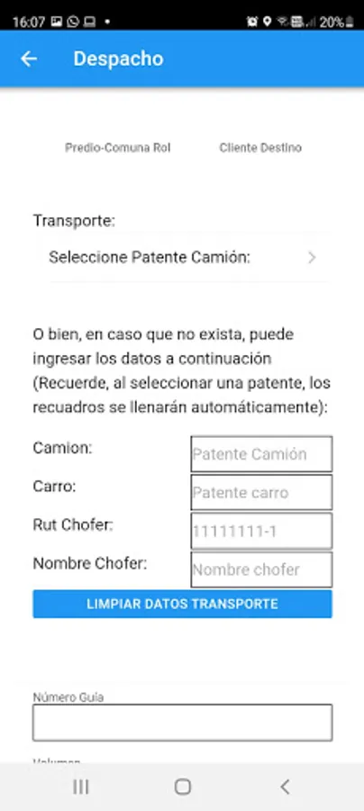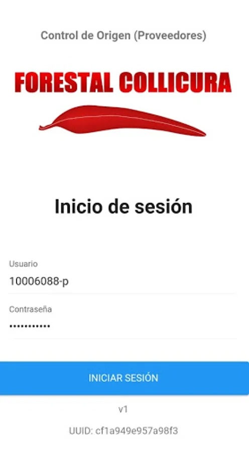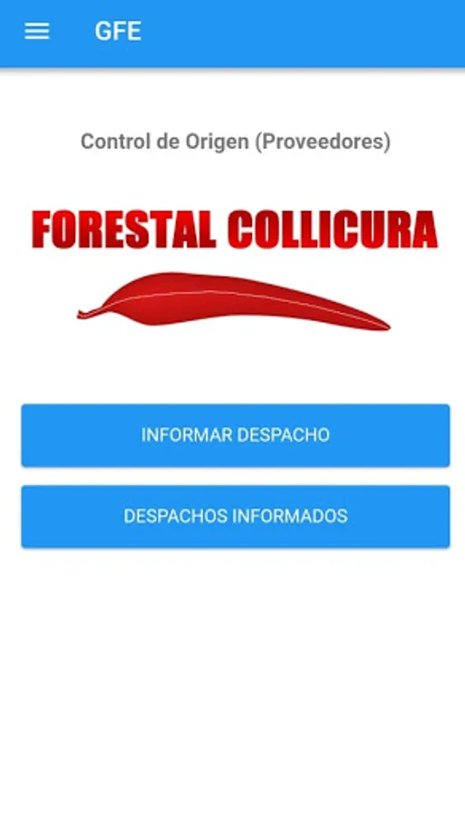 The application allows you to register information on the origin of wood from suppliers for Collicura forest.
