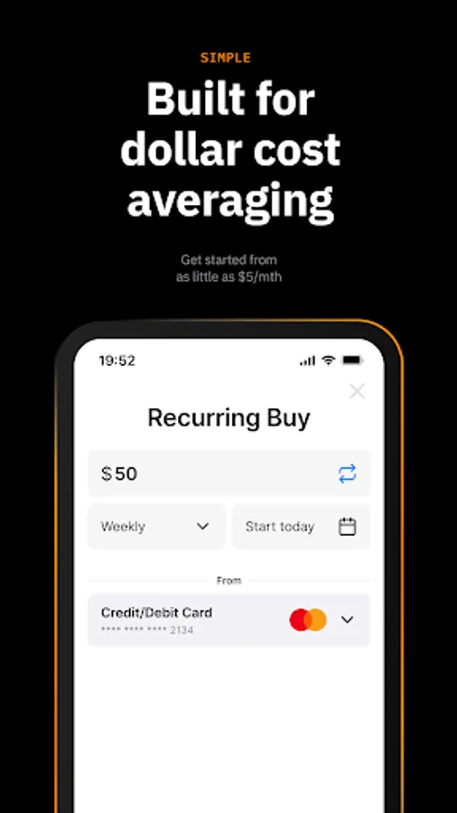 Via recurring purchases, Amber provides you with the tools to configure and easily adjust a Dollar Cost Average plan right from the palm of your hand.
