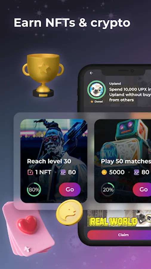 - Log in daily to complete gaming tasks and earn crypto and NFT rewards
