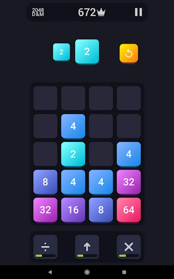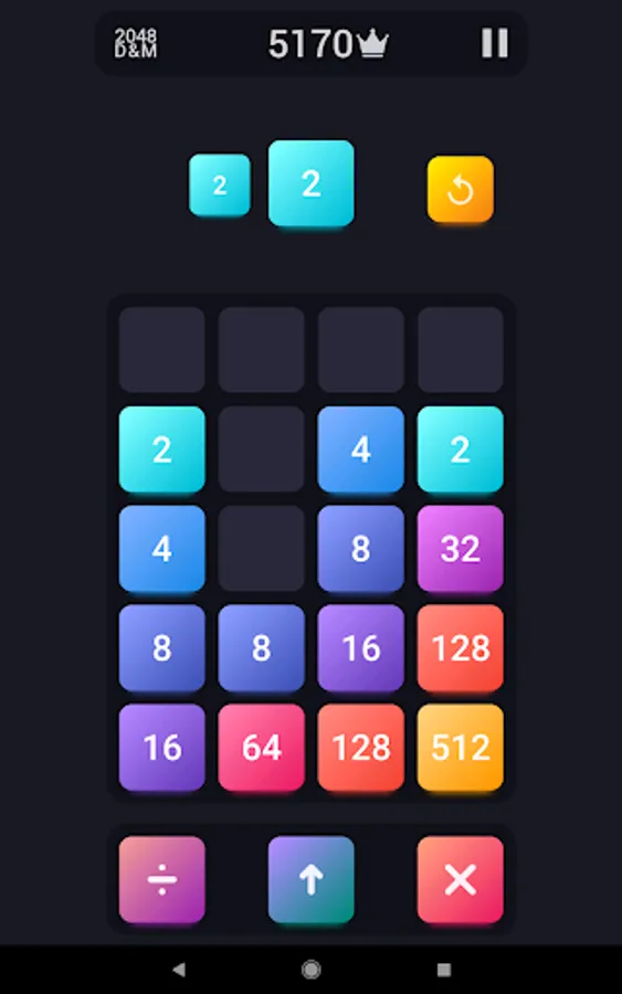 - Division: use this bonus to divide the number on the tile by 2. If you apply this bonus to tile 2, it will be removed, since this is the tile with the minimum number.