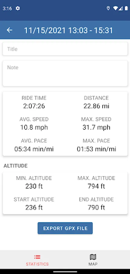 - GPX file export