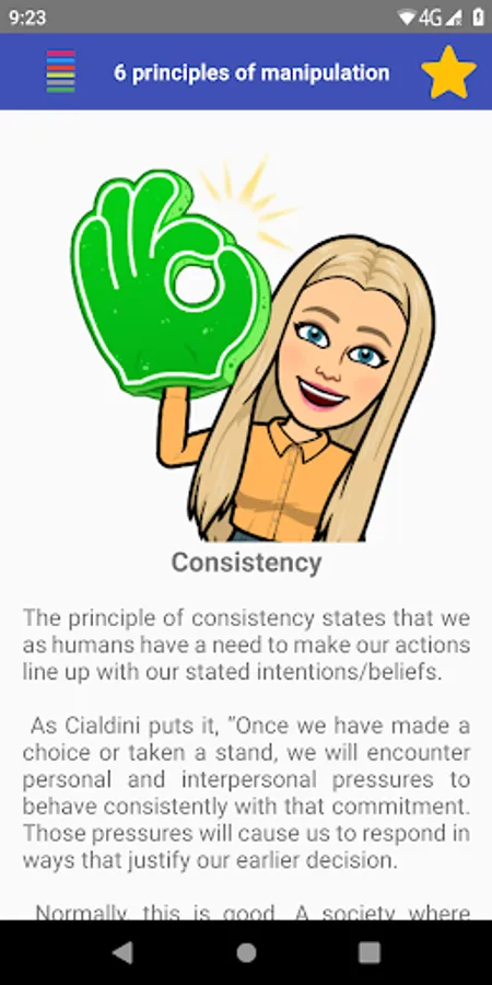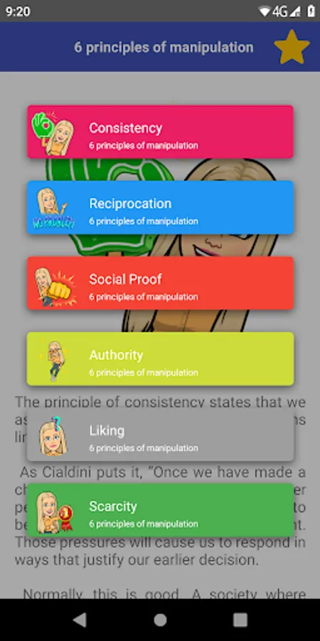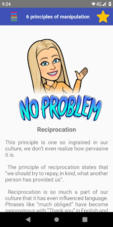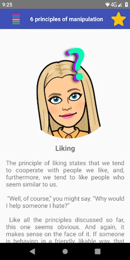"6 Principles of Manipulation" is a powerful educational tool that explores the art of persuasion and teaches you the six fundamental principles of manipulation. With clear and concise explanations and real-world examples, this app will help you develop a deeper understanding of how to influence others and achieve your goals. Whether you're a student, a business professional, or simply interested in the psychology of persuasion, this app is an invaluable resource for improving your communication skills and mastering the art of manipulation.