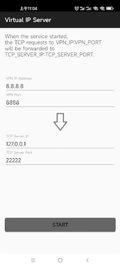 Using this app, you can set an arbitrary 'virtual' IP address on your mobile phone. The requests to the 'virtual' IP address will be redirected to the specified server.