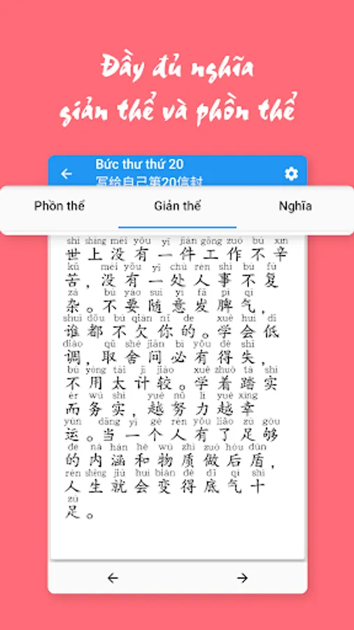 Simplified and traditional words have a pinyin right above them to make it easier to read,