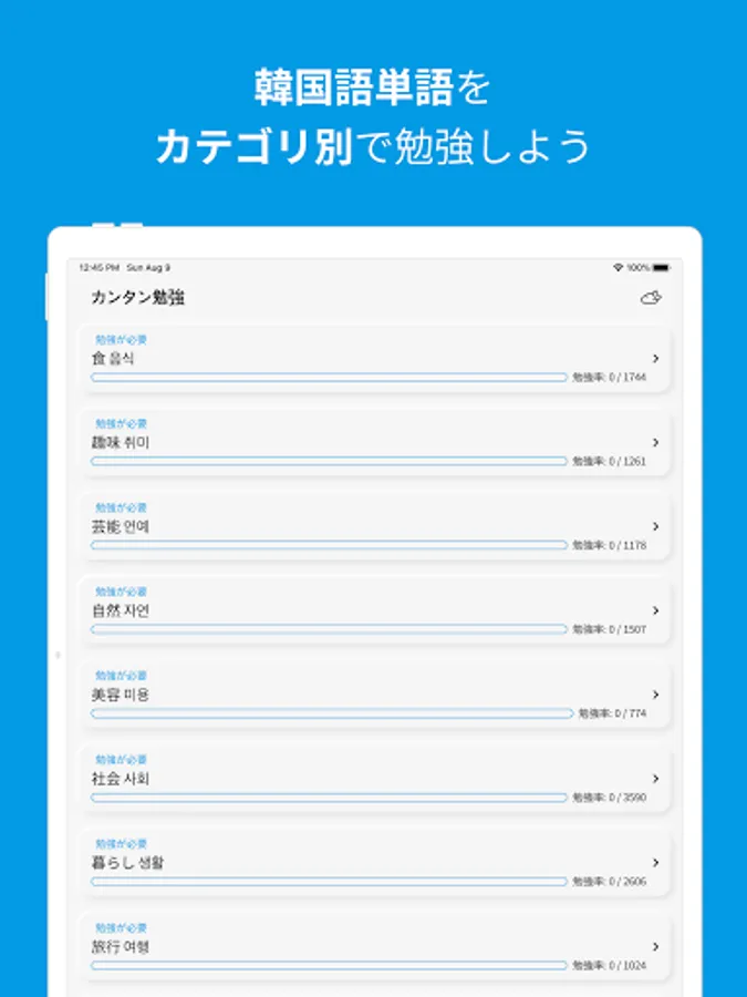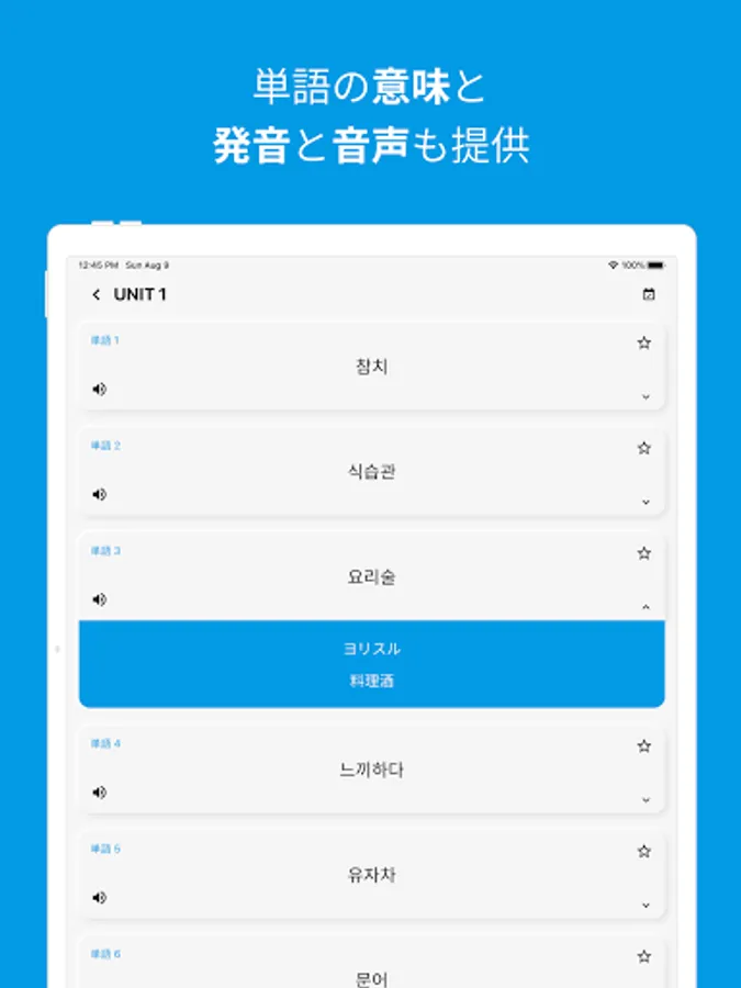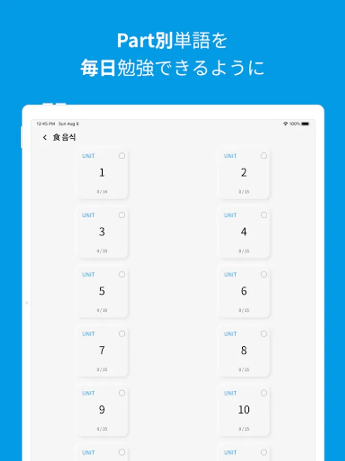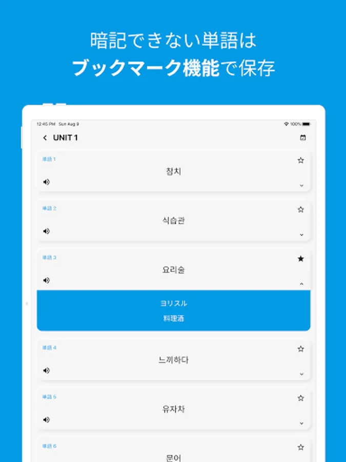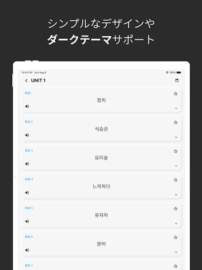 Studying words is still repetitive! You can review the Korean language you have studied by UNIT, category, and all words.