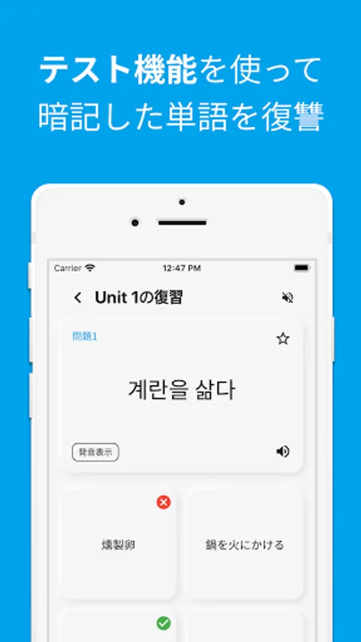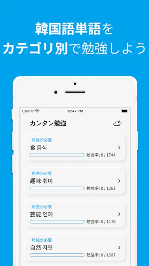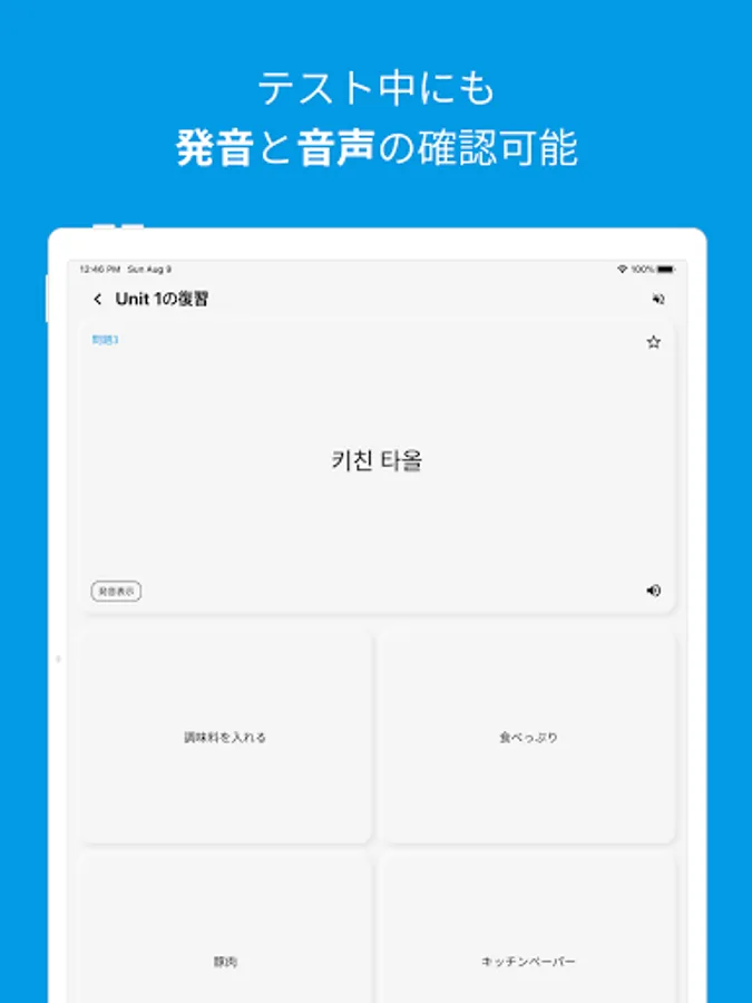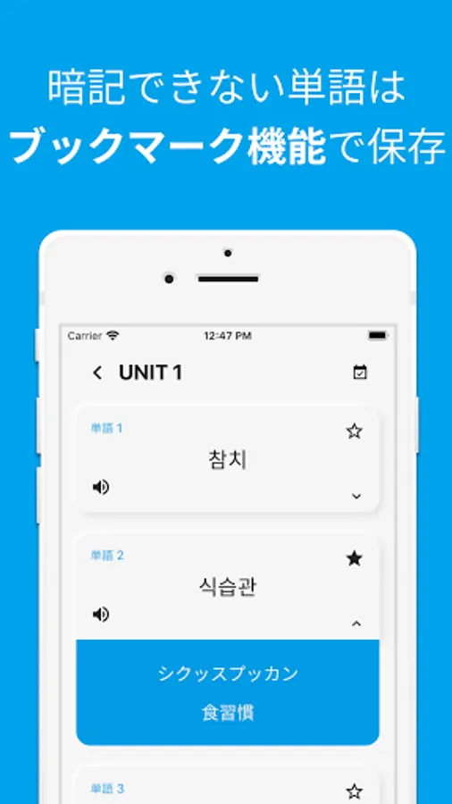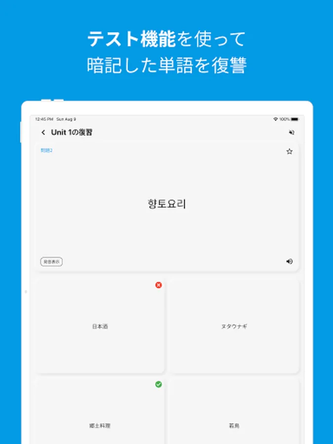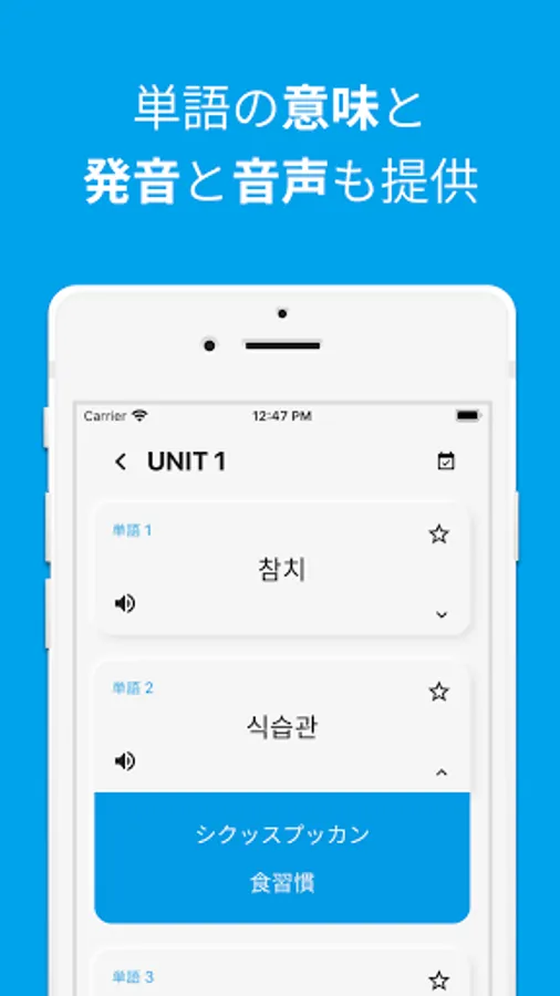 Studying words is still repetitive! You can review the Korean language you have studied by UNIT, category, and all words.