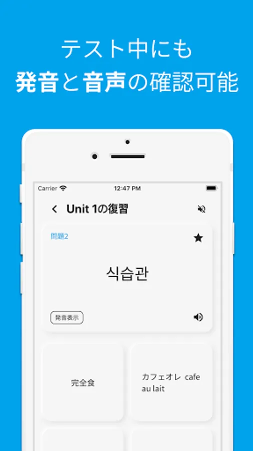 Don't worry. Easy study displays Korean pronunciation in katakana and provides voice to everyone.
