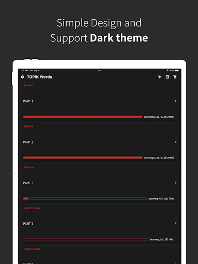 TOPIK words provide Korean vocabulary divided to memorize per day, so everyone can study easily.