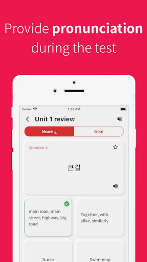 Do not worry. TOPIK words will support Korean voice, so you can learn how to read.