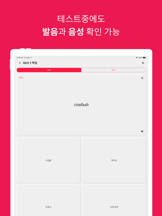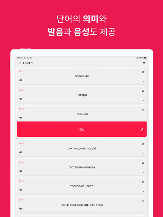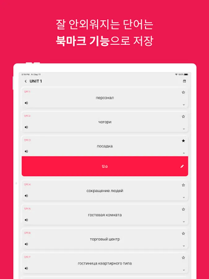 Studying words is also repetition! You can review the Russian words you have studied for each part, unit, or whole unit.