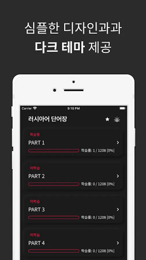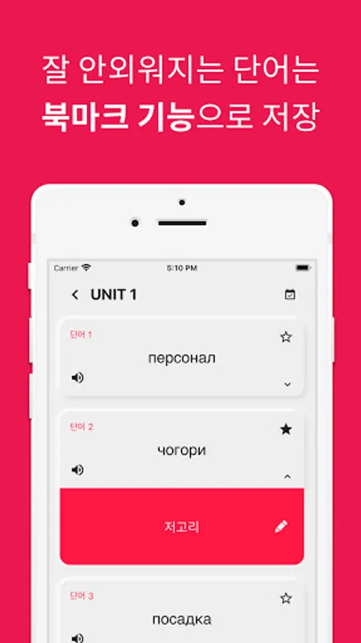 - Favorites: Words that are difficult to memorize can be added to favorites by pressing the star button.