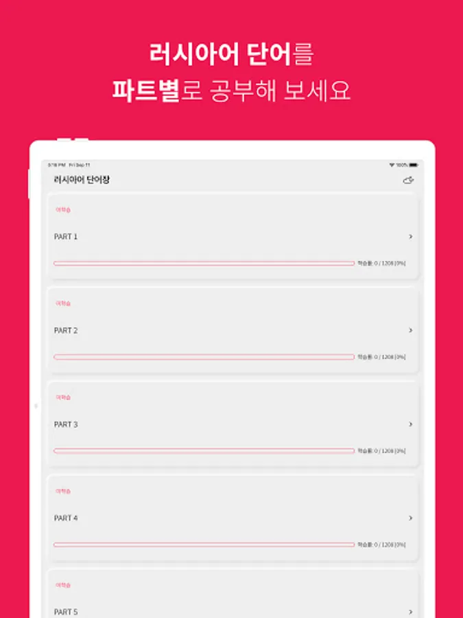 To make it easy for anyone to study every day, Russian words are provided by dividing the amount of words that can be memorized in a day.