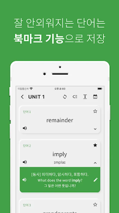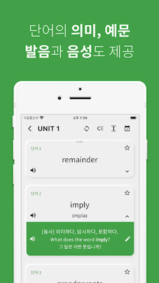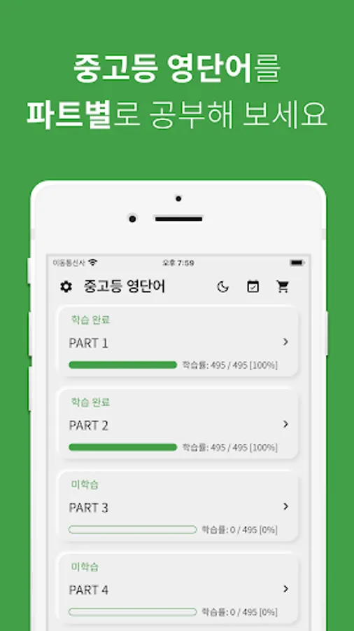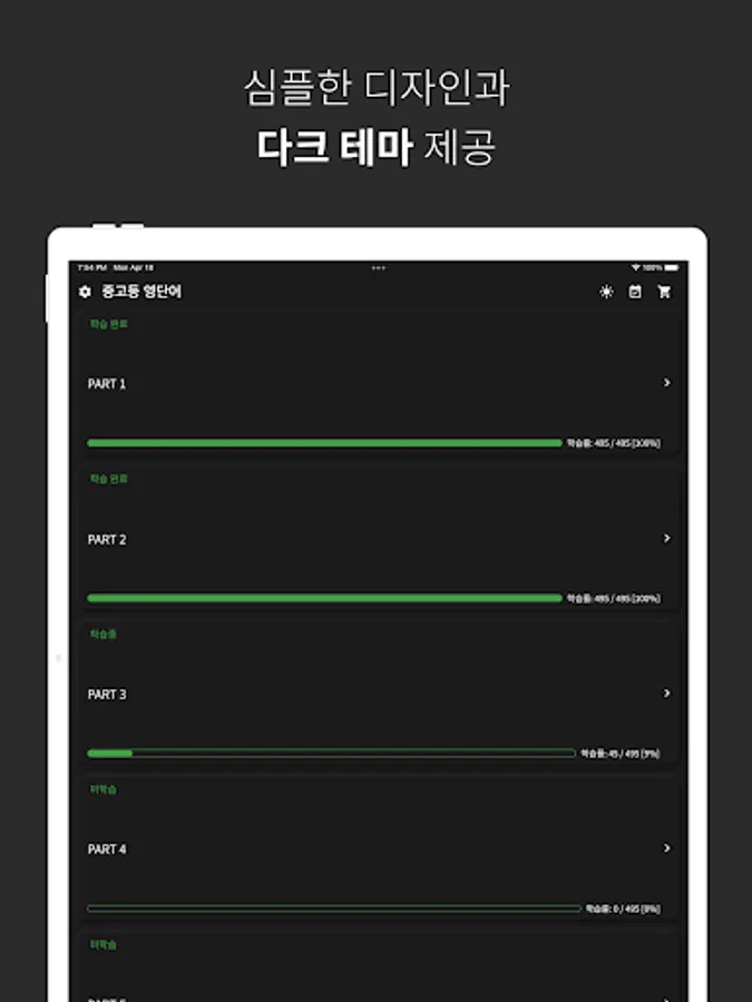 All words are installed with the app when you download it. Therefore, you can study middle and high school English words anytime, anywhere.