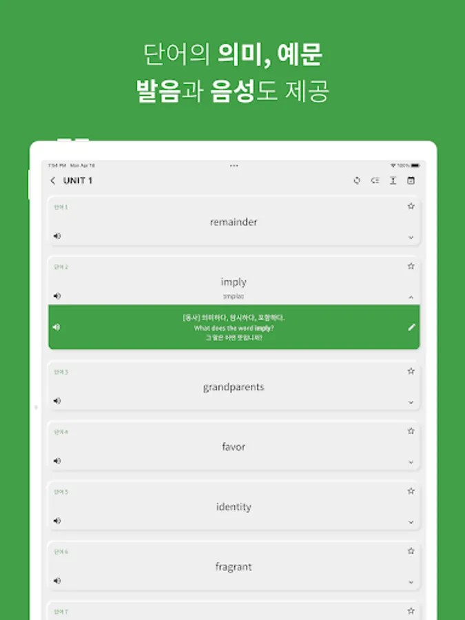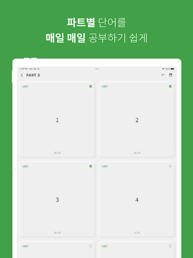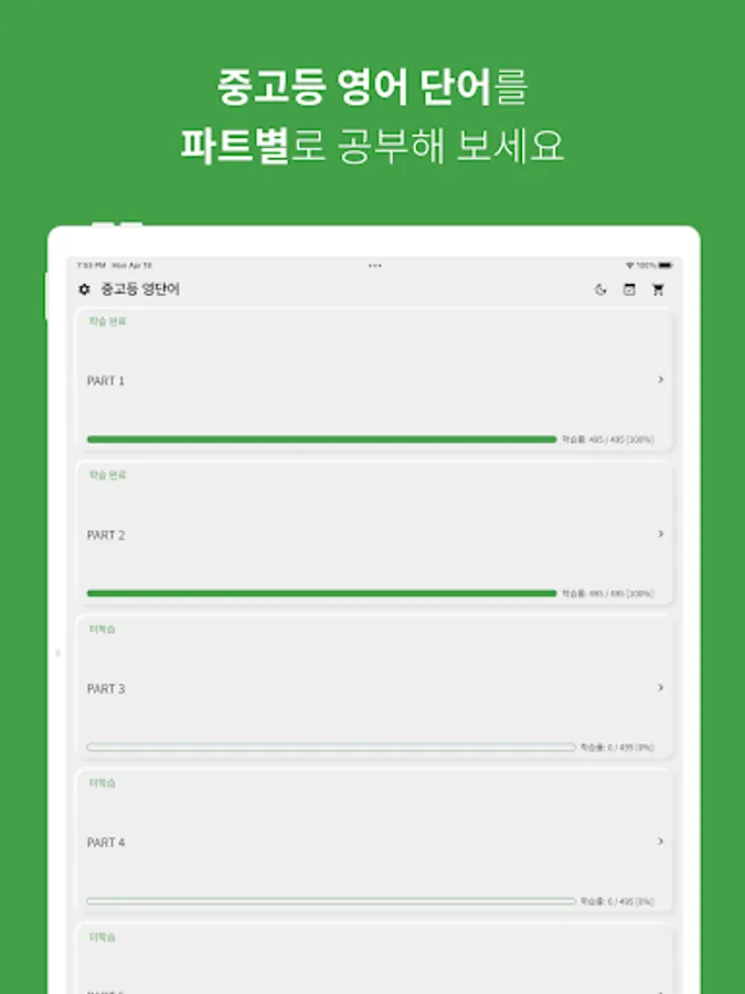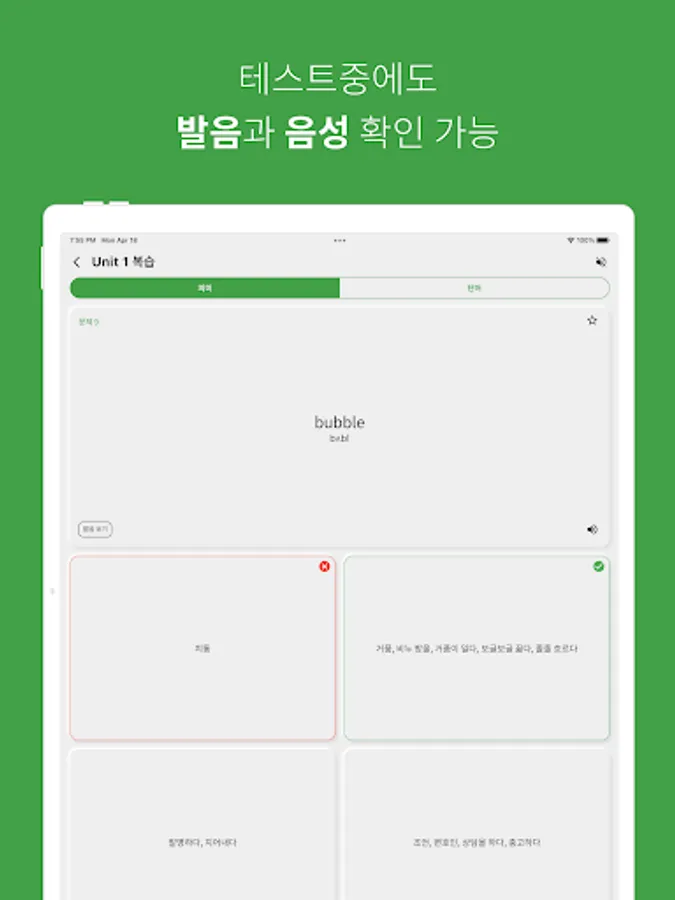 Word study is also repetition! You can review the middle and high school English words you studied by part, unit, and whole unit.
