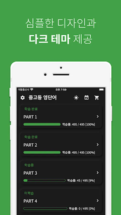 - Set/reset learning progress: You can set or reset the learning progress by long-pressing a part or unit.