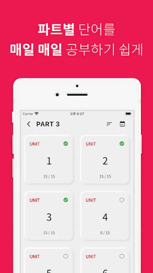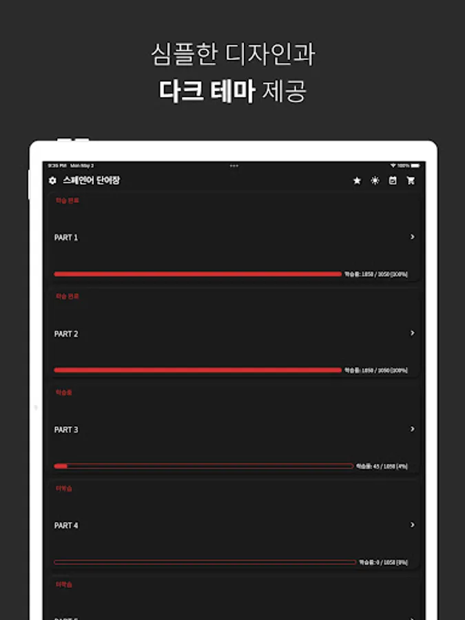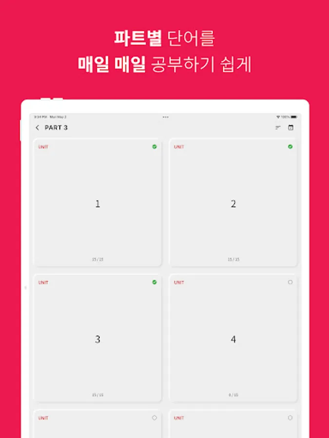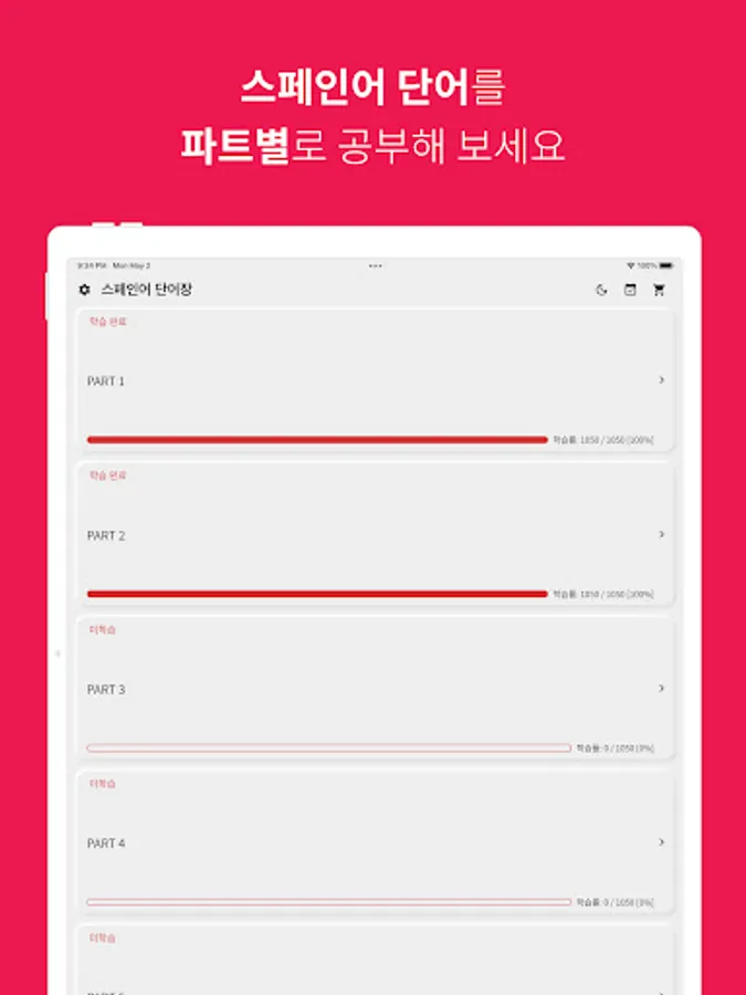 - Set/reset learning progress: Long press on a part or unit to set or reset the learning progress.
