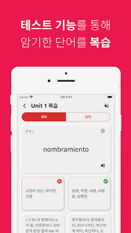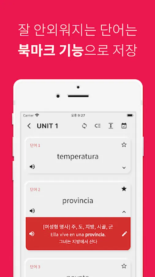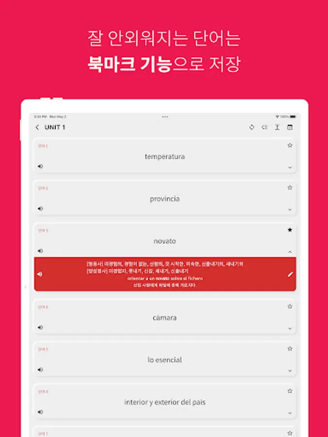 - Favorites: Words that are difficult to memorize can be added to favorites by pressing the star button.