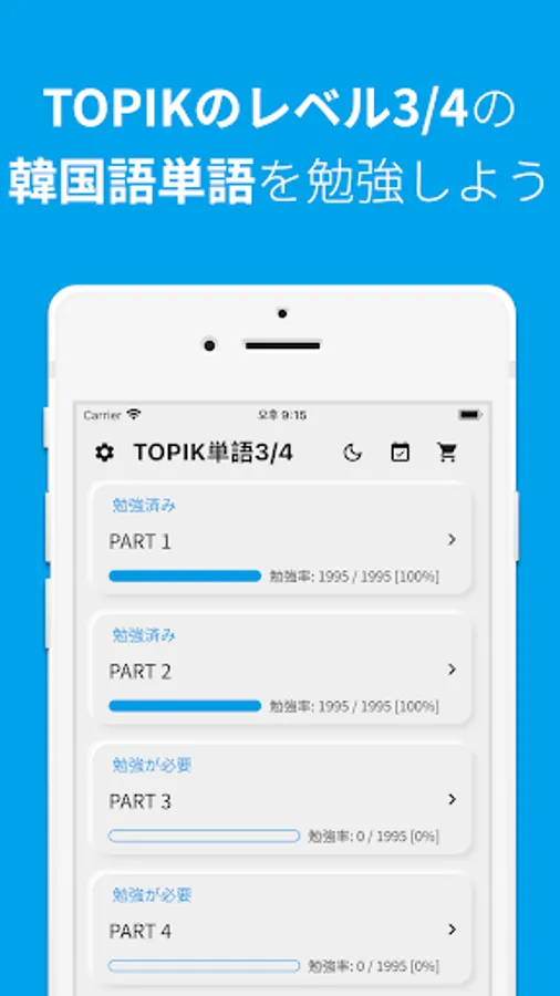 TOPIK3 / 4 provides Korean TOPIK (topic) words by Part.
