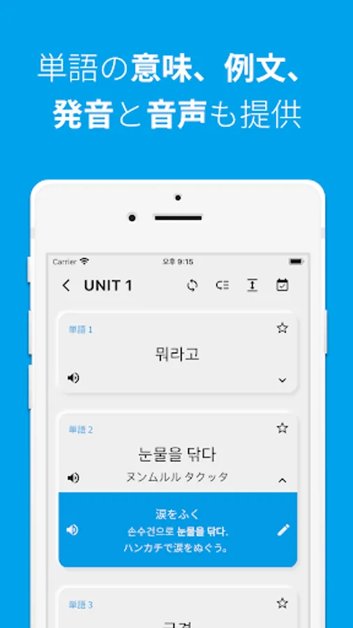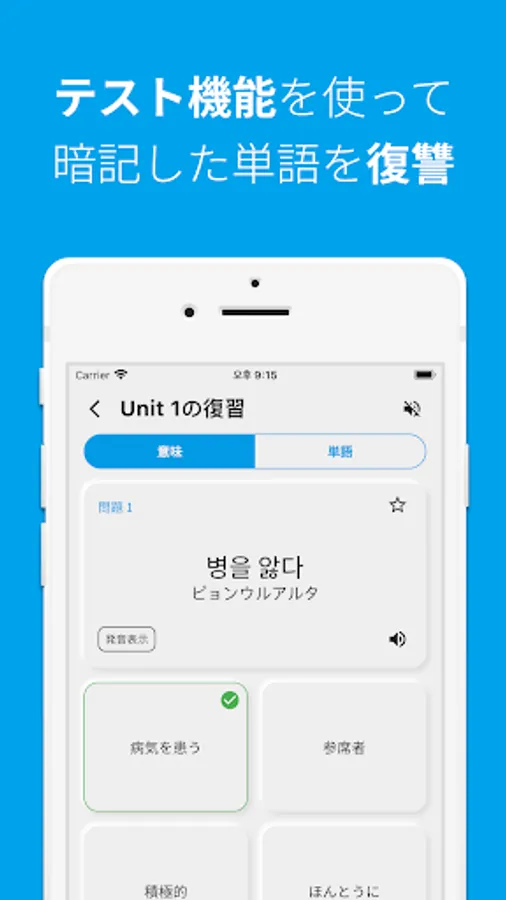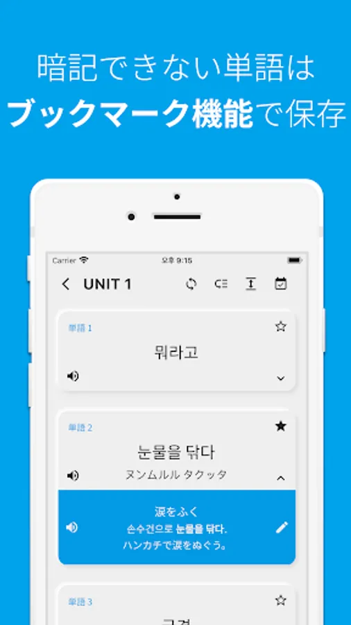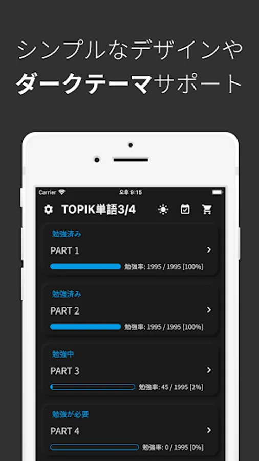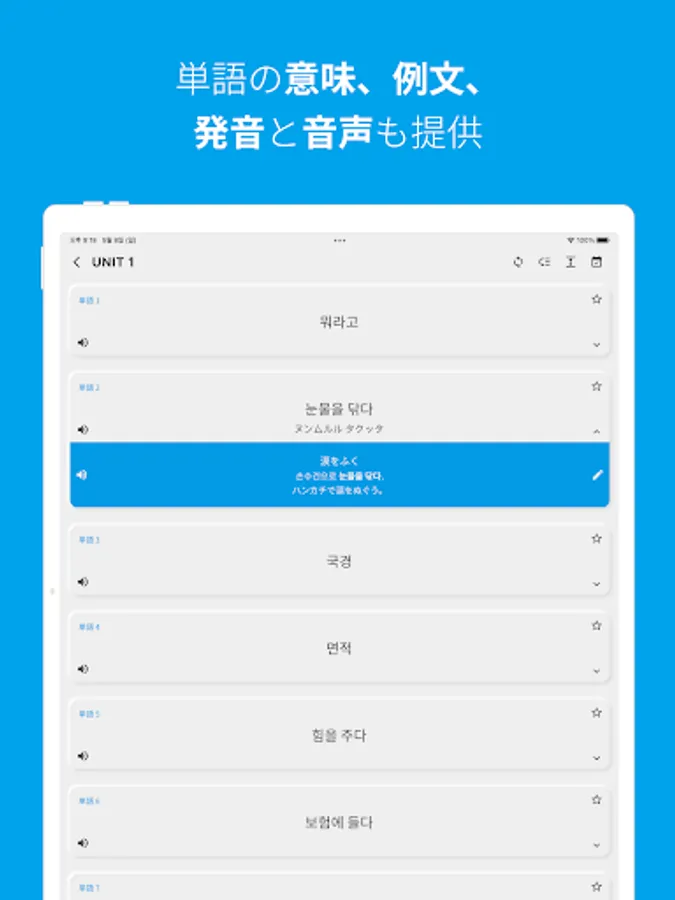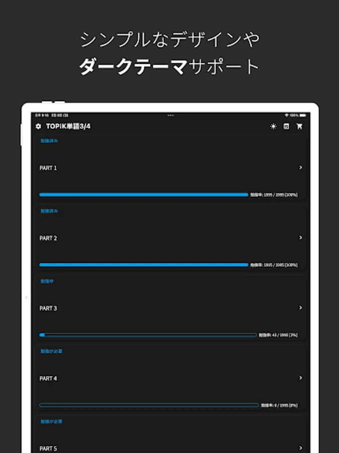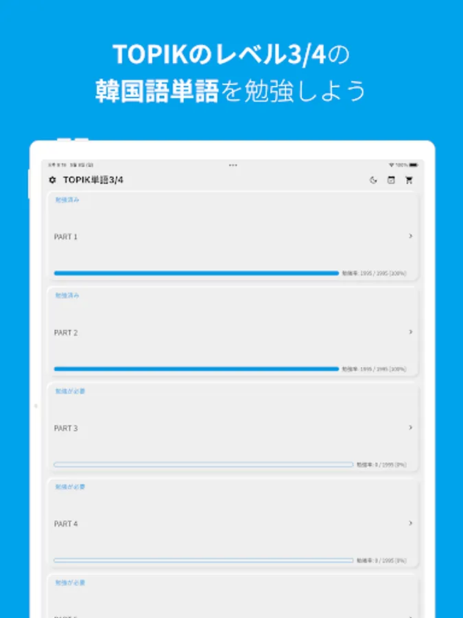 Studying words is still repetitive! You can review the TOPIK Korean you have studied by PART (part), UNIT (unit), and all words.