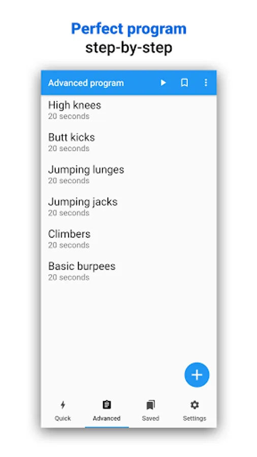 Use the quick start program or make your own perfect workout program. Special for you we made a few workout programs: