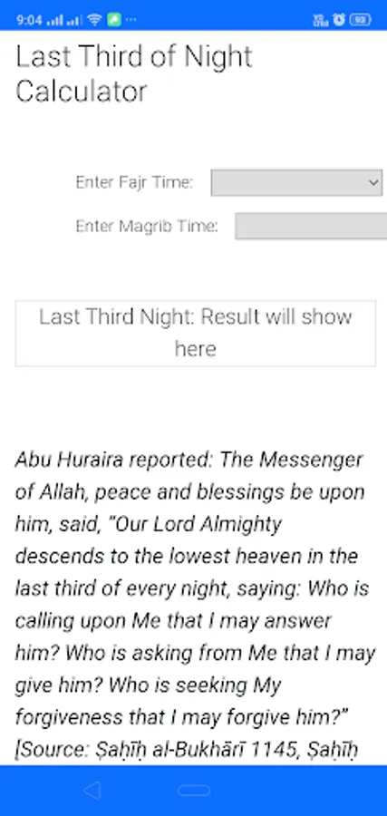 Last Third Night Calculator for Muslim prayers