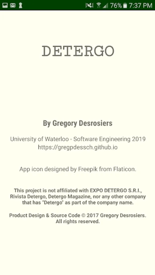 This project is not affiliated with EXPO DETERGO S.R.I., Rivista Detergo, Detergo Magazine, nor any other company that has "Detergo" as part of the company name.