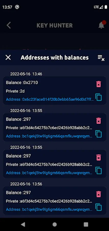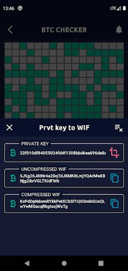 This application calculates the addresses of bitcoin and ethereum wallets using a private key, and also checks the balance. If the balance is positive, the private key, wallet address and balance are saved to the internal database. Also, there is a possibility convert private to wif compressed and uncompressed key.