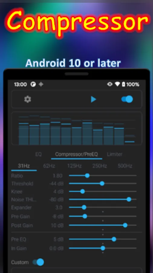 On Android 10 or later, you can enjoy music with the best sound by adjusting the Compressor.