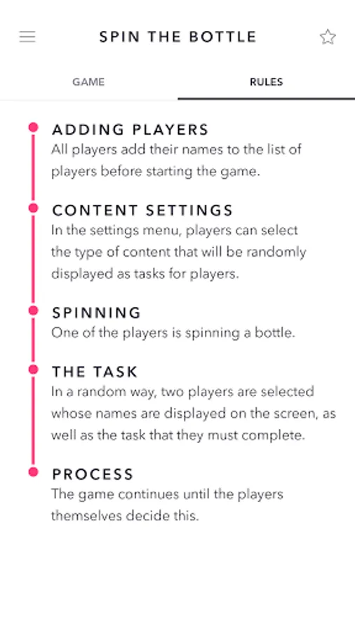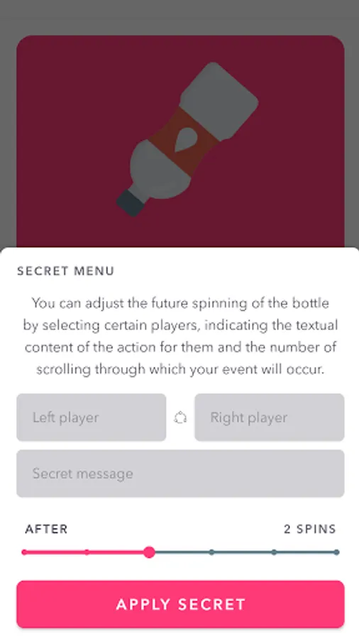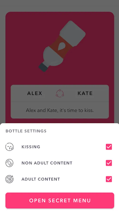 A game for a company of two or more players. Play at a party or a date, with friends or loved ones, you only need a few players and a bottle app to have a great time together.