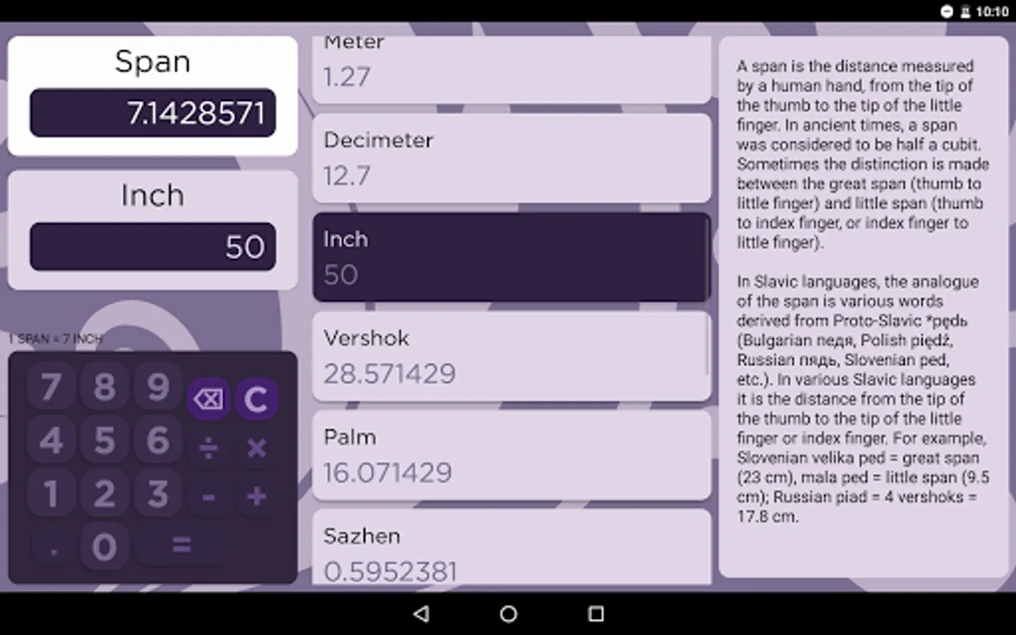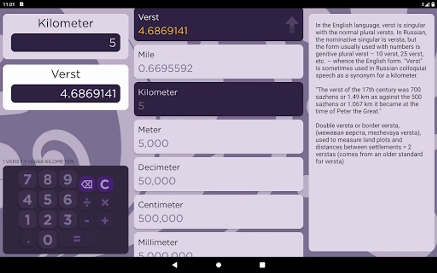 If you are reading a literary book about 18th century, or studying history, or you feel limited with the standard units of measurements, or by any other means find yourself curious about historic units used one or two centuries ago, like when it was time of Russian Empire, then this application might take you interest.