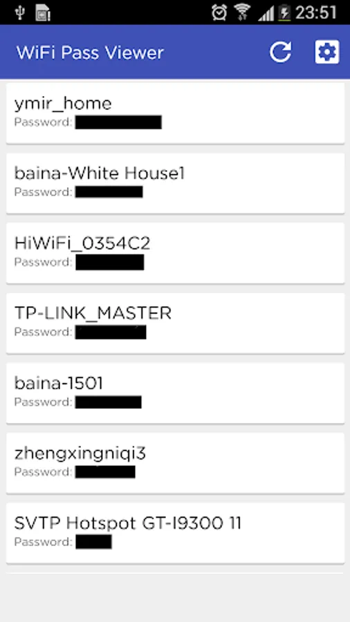 Wi-Fi Pass Viewer shows the passwords saved in system Wi-Fi Settings.