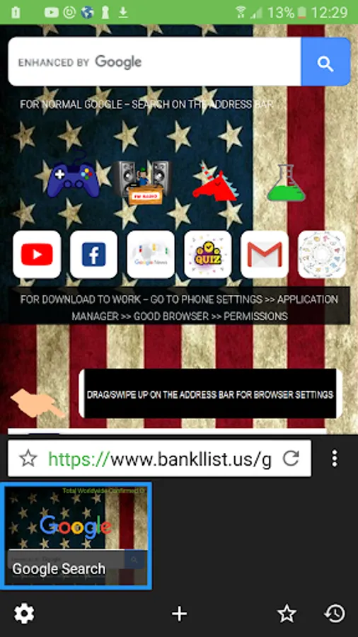 This browser is exclusively created for native Americans. All the requirements has been kept in mind and we tried to make it the lightest and the best American Browser. The browser is built with the latest technology, however, it's UI is very simple and easy to use.