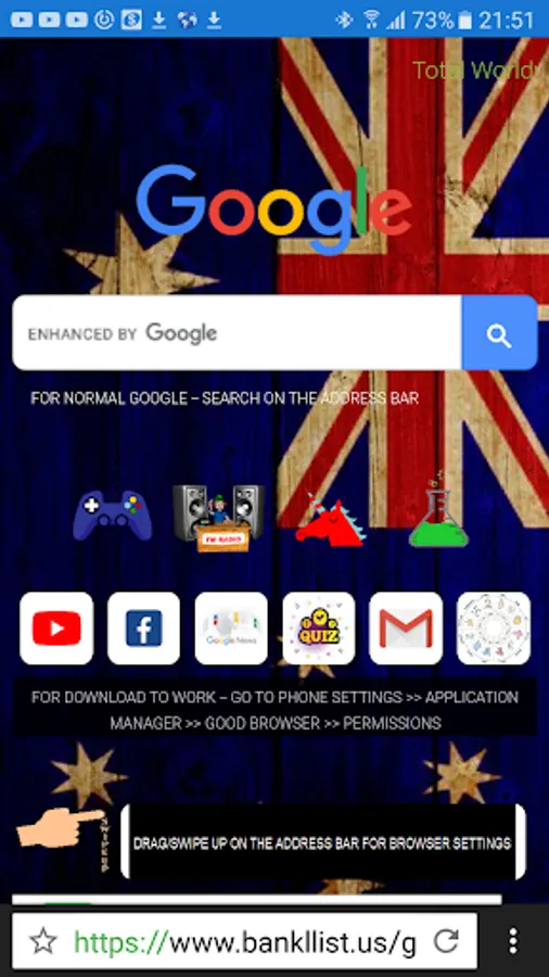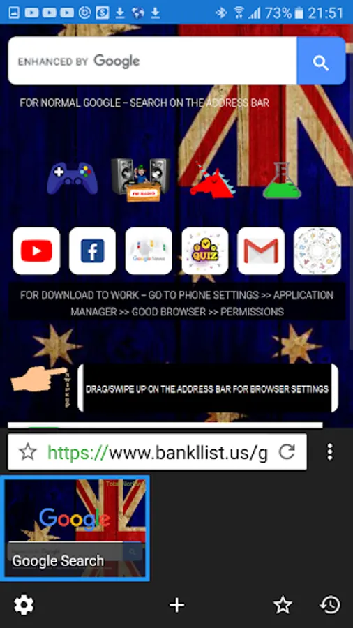 This browser is exclusively created for native Australians. All the requirements has been kept in mind and we tried to make it the lightest and the best Australian Browser. The browser is built with the latest technology, however, it's UI is very simple and easy to use.