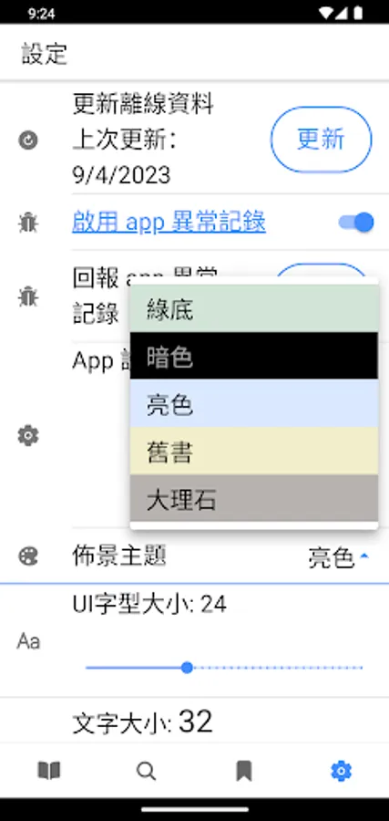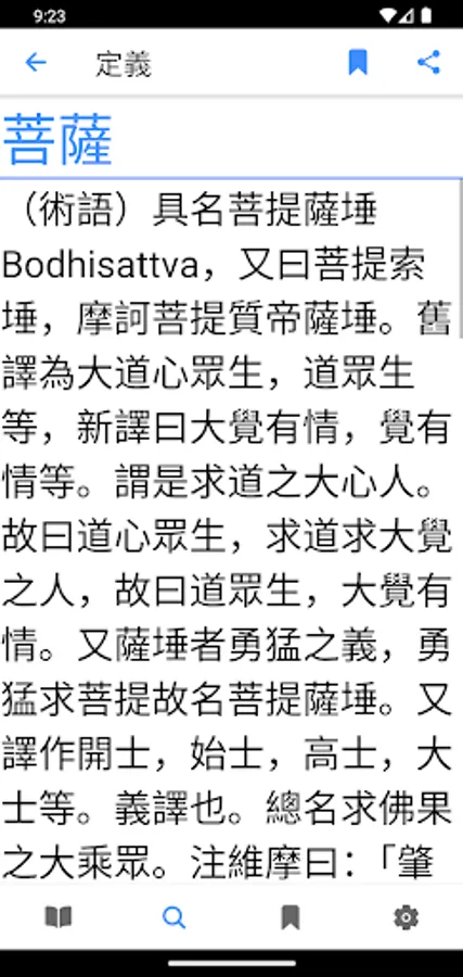 此 app 特色:隨機或自定顯示一則佛學辭定義、書籤功能、網址分享、離線瀏覽(初次啟動須連網)、佈景主題切換、字型調整、跨平台、無廣告、開放原始碼。