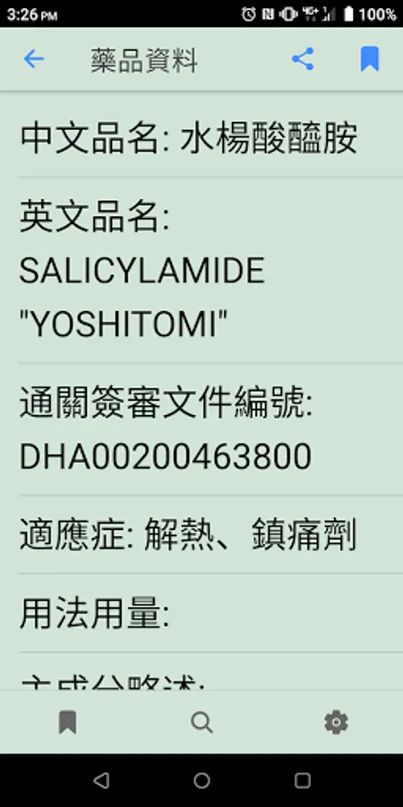 * This app can query information about drugs approved by the Taiwan Food and Drug Administration, such as English name, ingredients, efficacy/side effects. The drug search function supports searching Chinese names, English names, and manufacturers.