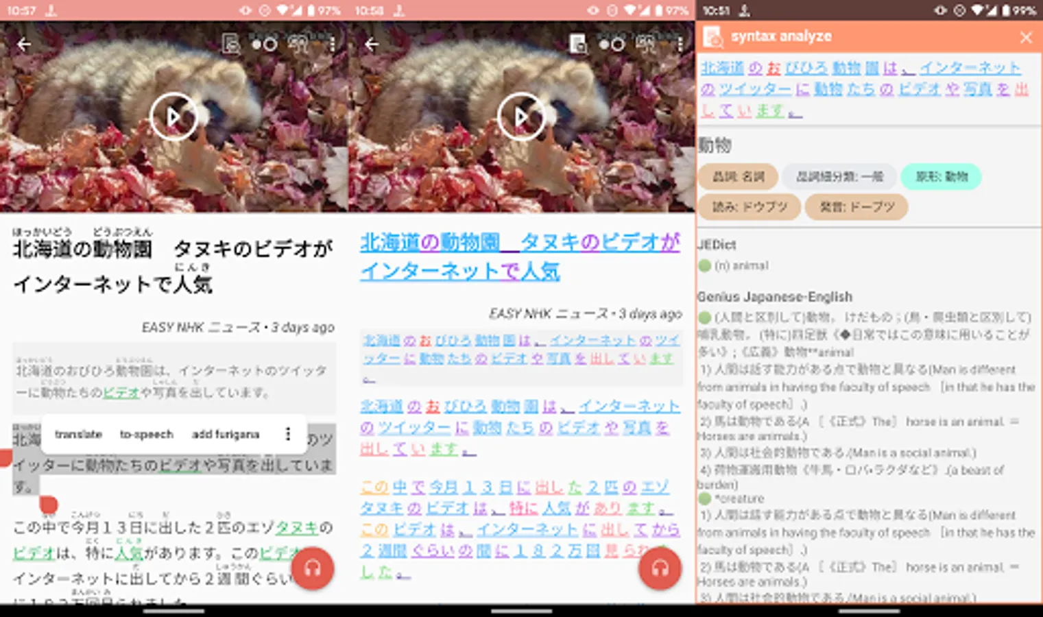 Features: - Original Japanese news; includes video, audio, text, pictures! You can download as you like, and at the same time, you can translate words, add pseudonyms in real time, and customize text to voice to make your most simple, convenient, direct and efficient experience!