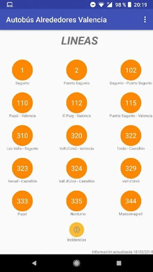 This application shows the schedules of some AVSA bus lines. This application is not developed by the company AVSA, so there could be some mismatch at some time. For any error send a message to the email angelsg96.contacto@gmail.com