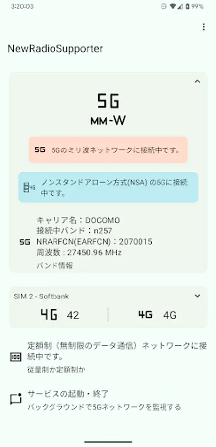 This is an app that allows you to check which 5G is Sub-6, millimeter wave, diverted 5G, or anchor band.