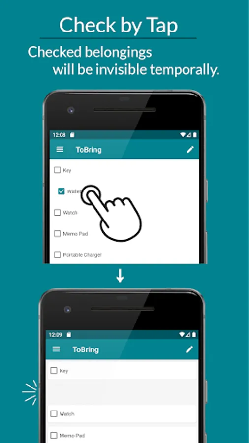 ・ High visibility: Checked belongings disappear from the screen temporarily, so you can see what you have not prepared at a glance.