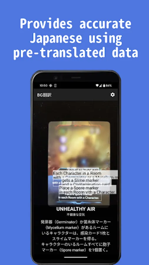 If the application retains Japanese translation data for the target component captured by the camera, the translated data is displayed on the screen.