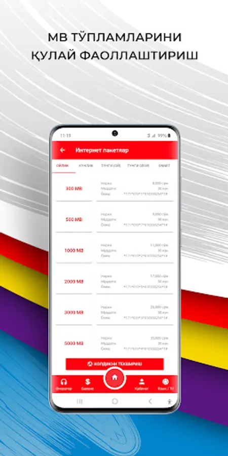 The application allows you to manage your cell operator subscription and account in Uzbekistan. The application supports the following uzbek operators: Uzmobile, Mobiuz (formerly UMS) and others. It uses USSD codes to communicate with your operator and does not require any internet connection.