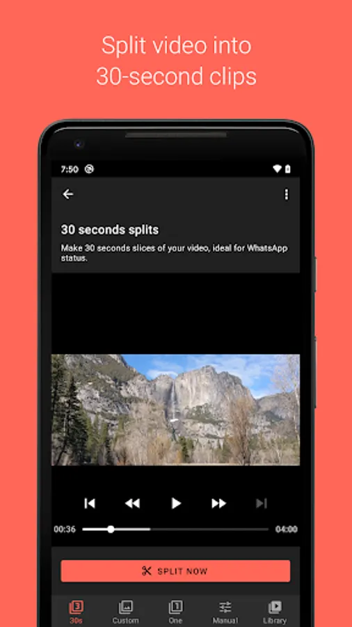 - Split your videos seamlessly into 30 seconds or custom splits for WhatsApp and other social media platforms.