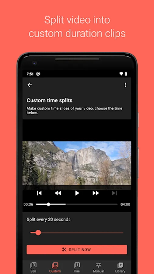 - Split videos into custom duration clips according to your preference.
