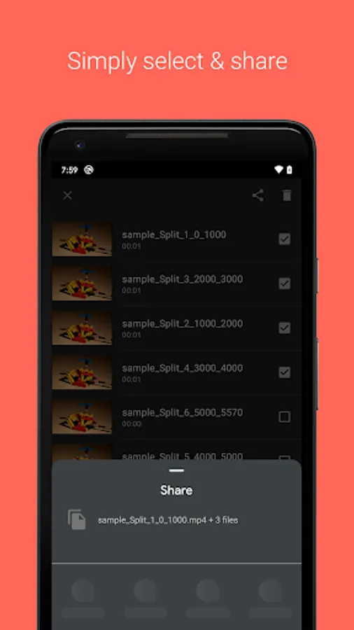 - Easy to select single or multiple videos from library and share them.