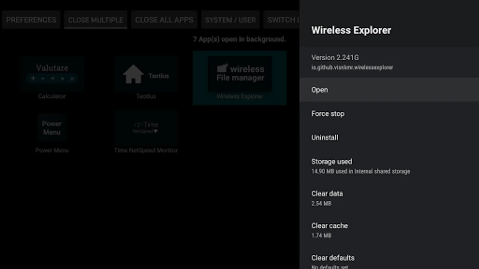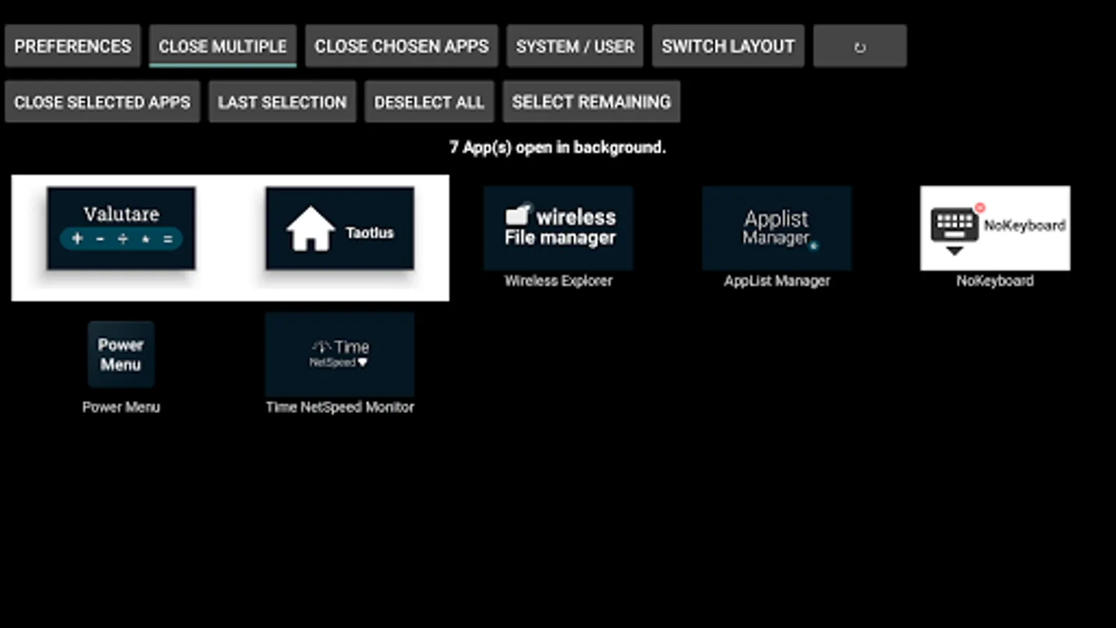 When you select/click on app(s) it takes you to the app info screen of selected app(s); from where you are to select "Force Stop" in order to close the app.