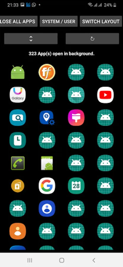 ✓ Lists User apps and System apps.