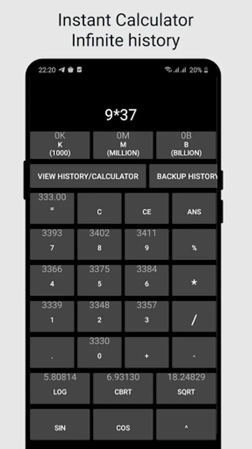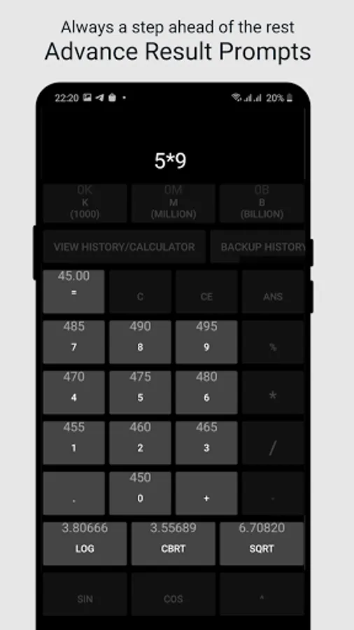 ✓ Do scientific operations such as ^,sin,cos,log,sqrt,cbrt.