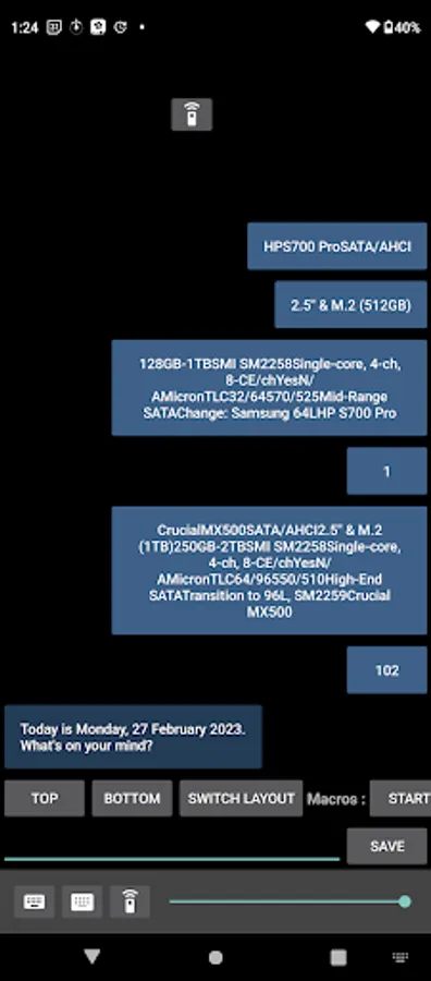✓ If slider value is less than 5 the keyboard icon will disappear from the bar; it will reappear once the value is increased to above 5.