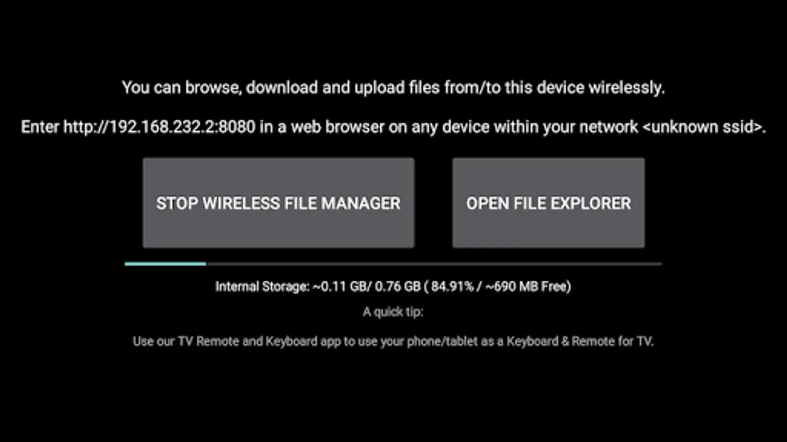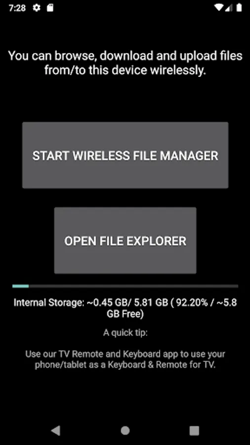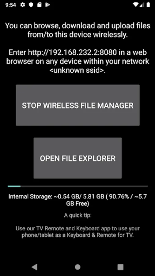Transfer and Manage the sent files on your android (Internal Storage, External Storage) using any web browser.