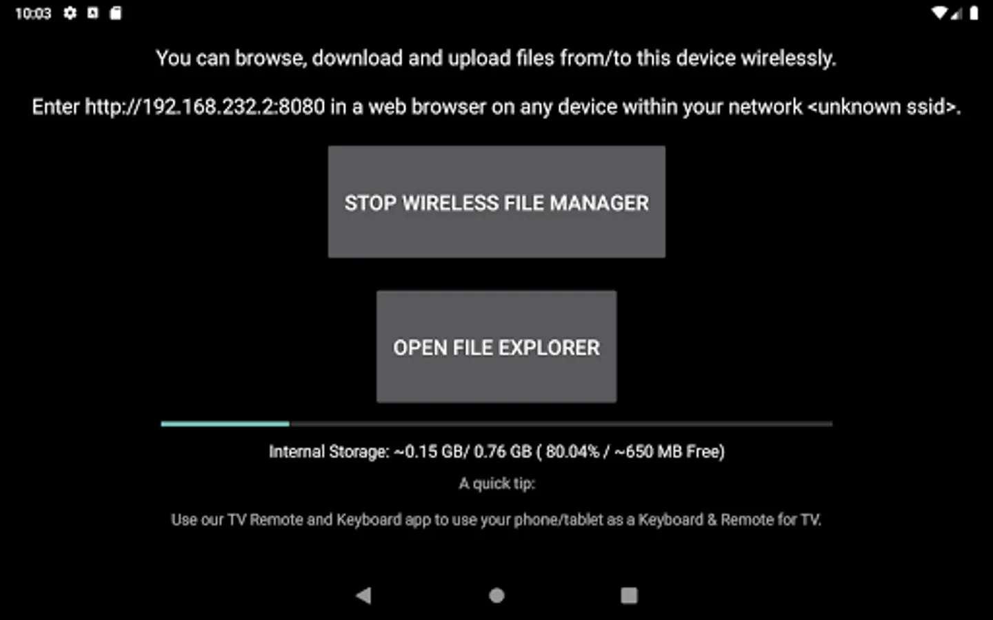 ✓ Includes a file explorer that allows you to browse, open and delete sent files.